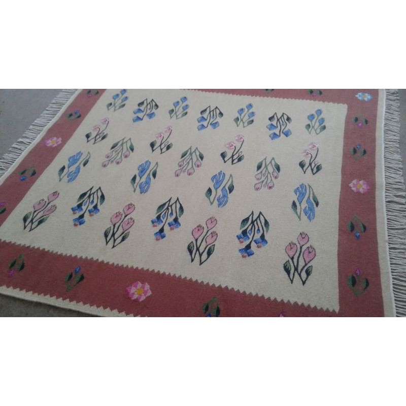 Covor lucrat manual din lana pe urzeala din bumbac!