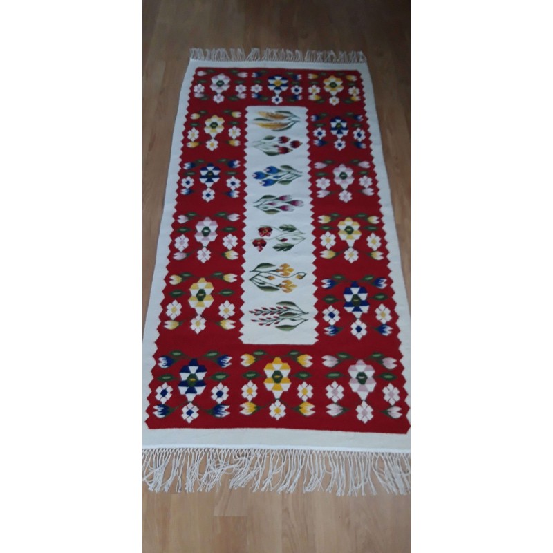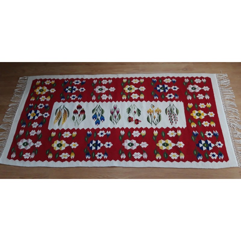 Covor lucrat manual din lana pe urzeala de bumbac!