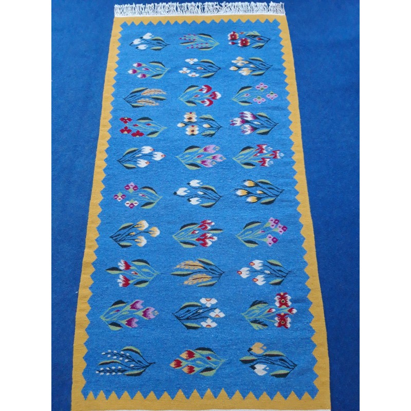 Covor lucrat manual din lana pe urzeala din bumbac!