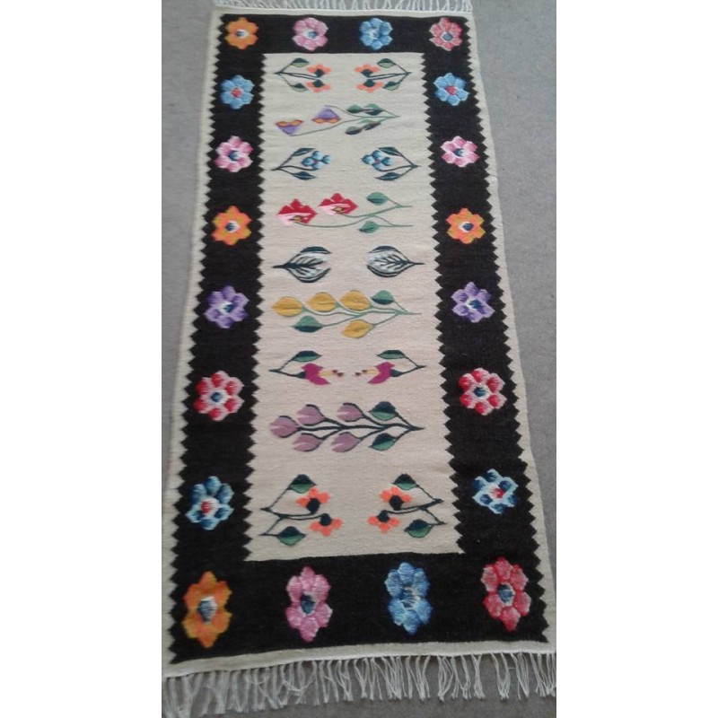 Covor traditional lucrat manual din lana pe urzeala din bumbac!
