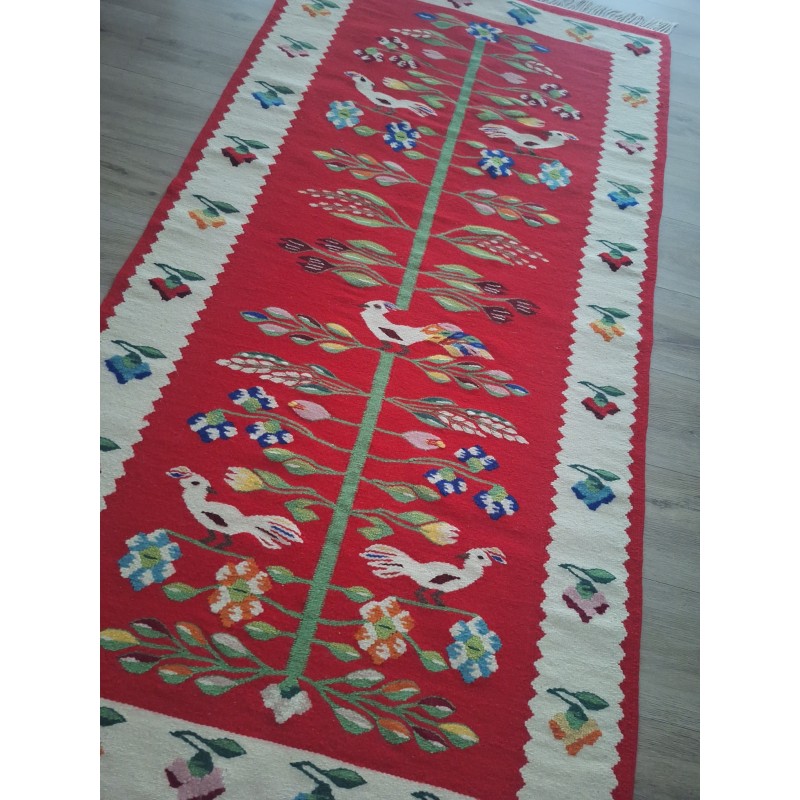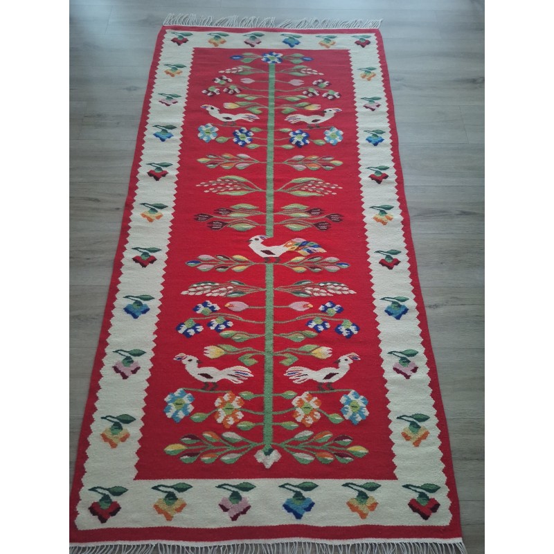 Covor oltenesc lucrat manual din lână pe urzeală din bumbac!